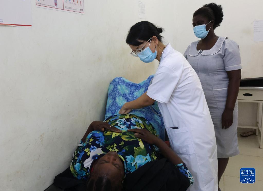 2月27日,在位于塞拉利昂首都弗里敦市郊的塞拉利昂-中國友好醫院,一名中國醫療隊醫生為患者檢查身體。