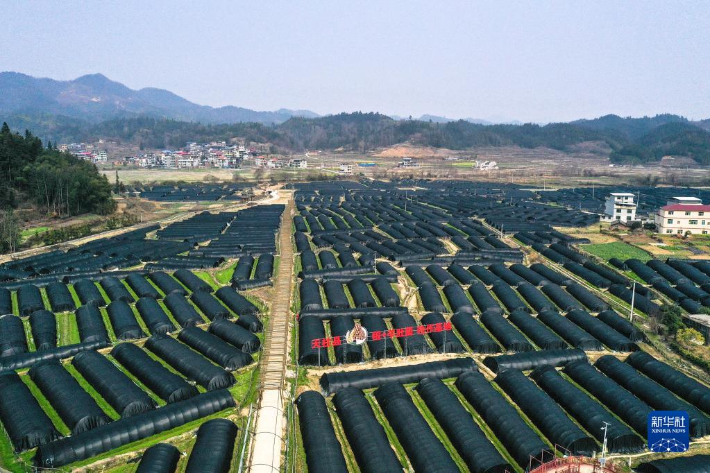 這是2月27日拍攝的貴州省天柱縣藍田鎮“稻+羊肚菌”輪作基地(無(wú)人機照片)。