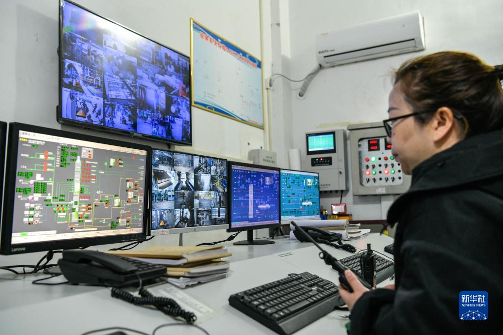 工人在貴州省天柱工業(yè)園區一家化工企業(yè)遠程操控生產(chǎn)(2月28日攝)。