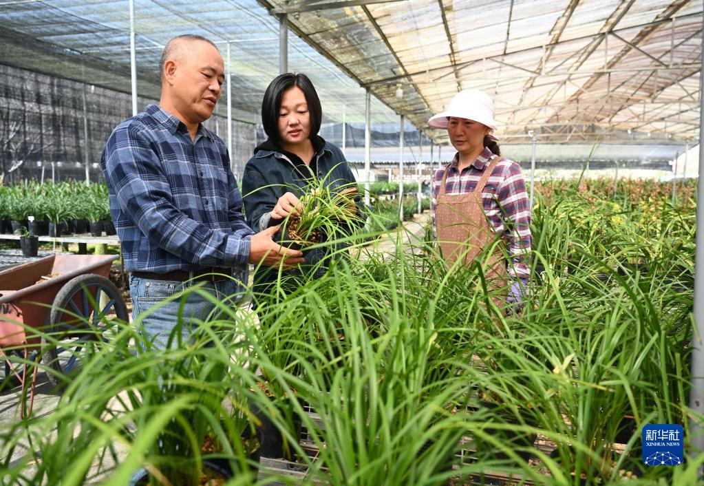 3月1日,蘭花種植戶(hù)張德胥(左一)給客人介紹蘭花品種。