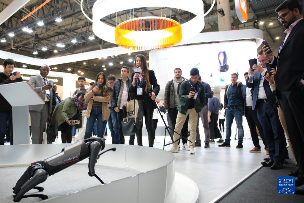 3月1日,在西班牙巴塞羅那,人們在世界移動(dòng)通信大會(huì )上參觀(guān)小米機器狗Cyberdog。