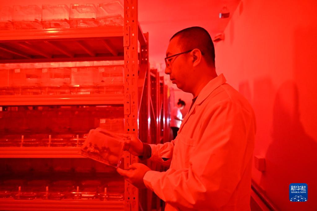 在中農熊蜂繁育基地,工作人員查看繁育車(chē)間內的蜂盒(3月1日攝)。