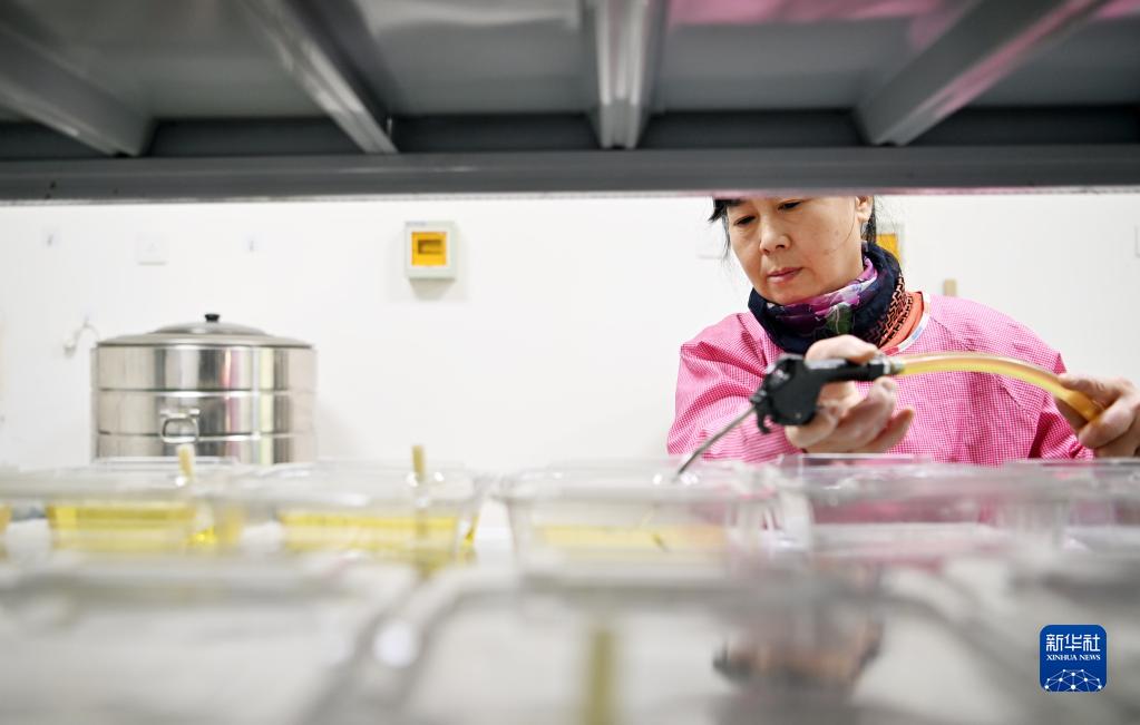 在中農熊蜂繁育基地,工作人員在調制營(yíng)養液(3月1日攝)。