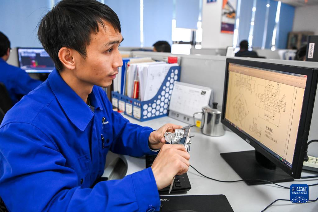 2月14日,在廣西柳工機械股份有限公司的辦公室,周穎峰在校對配件的技術(shù)參數。