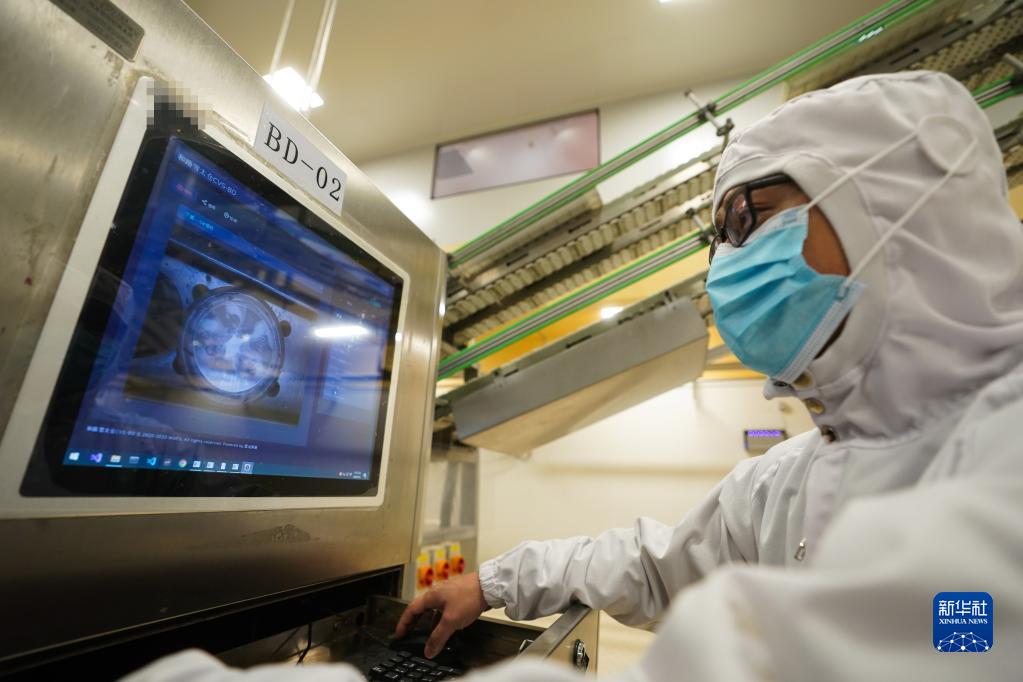 員工在檢查質(zhì)量缺陷AI識別系統運行狀態(tài)(3月1日攝)。