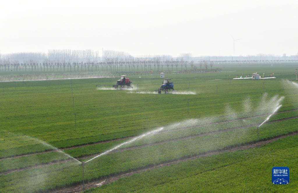 春耕時(shí)節,河南各地小麥主產(chǎn)區農民抓緊農時(shí),給小麥澆灌、施肥、病蟲(chóng)害監測等田間管理,一派繁忙景象。