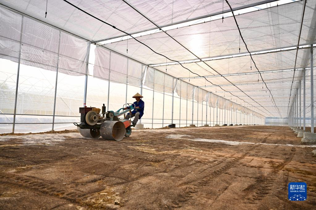 3月2日,工人在福建省浦城縣石陂鎮山農米業(yè)有限公司高標準農田水稻育苗大棚內平整土地。