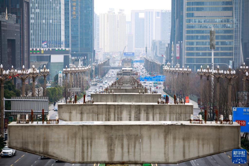 這是3月3日拍攝的已經(jīng)建設完畢的T2線(xiàn)部分橋墩(無(wú)人機照片)。