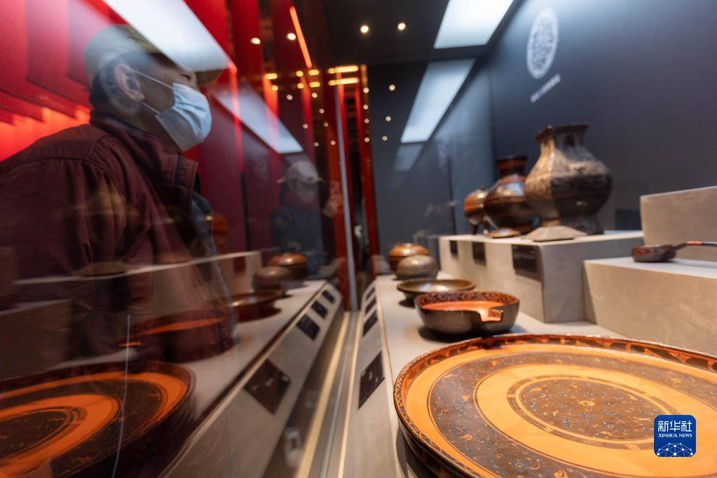 3月3日,人們在上海市閔行區博物館《漢·無(wú)極——長(cháng)沙馬王堆文物精品展》觀(guān)看漆器。