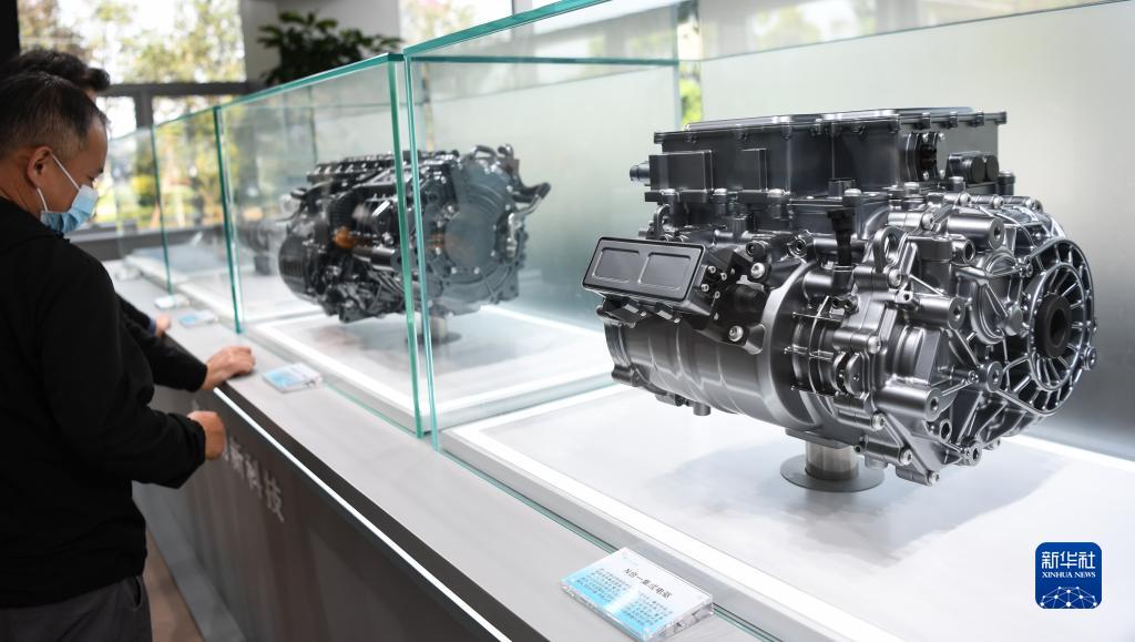 在廣汽埃安新能源汽車(chē)股份有限公司現場(chǎng)展示的集成電驅?zhuān)?月24日攝)。
