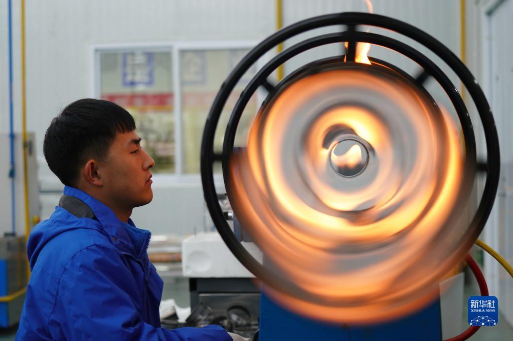 3月3日,河北省威縣一家新能源科技企業(yè)的員工在中高溫集熱管生產(chǎn)線(xiàn)上作業(yè)。