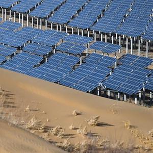 內蒙古自治區鄂爾多斯市達拉特旗位于庫布其沙漠東端。近年來(lái),達拉特旗將防沙治沙與綠色發(fā)展相結合,依托當地豐富的土地和光照資源積極發(fā)展新能源產(chǎn)業(yè)。截至目前,達拉特旗已建成100萬(wàn)千瓦裝機規模的光伏發(fā)電基地,年發(fā)電量可達20億度,每年可節約標準煤約68萬(wàn)噸,年均減排二氧化碳可達165萬(wàn)噸,在實(shí)現清潔能源利用的同時(shí)治理6萬(wàn)畝庫布其沙漠。