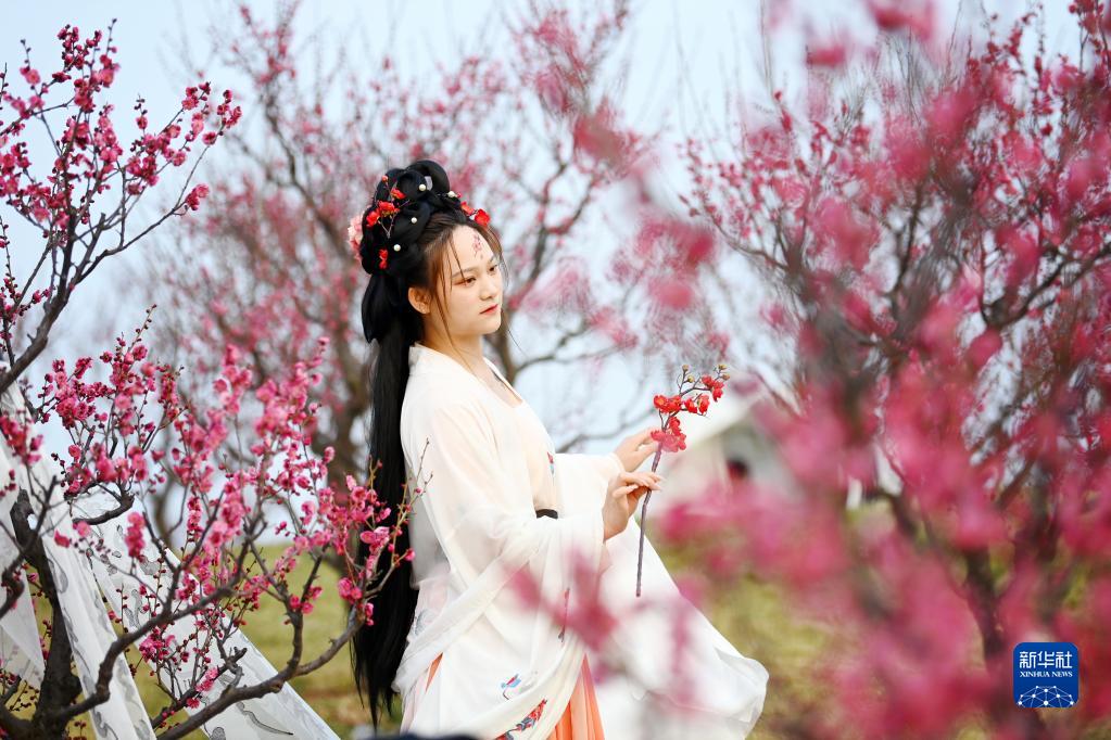 2月25日,古風(fēng)愛(ài)好者在陜西省西安市秦嶺終南山腳下長(cháng)安唐村梅園內留影。