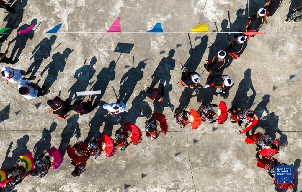 3月2日從空中俯瞰目瑙縱歌節現場(chǎng)(無(wú)人機照片)。當日,云南省德宏傣族景頗族自治州瑞麗市2023年目瑙縱歌節在位于中緬邊境的勐秀鄉戶(hù)瓦山寨開(kāi)幕。