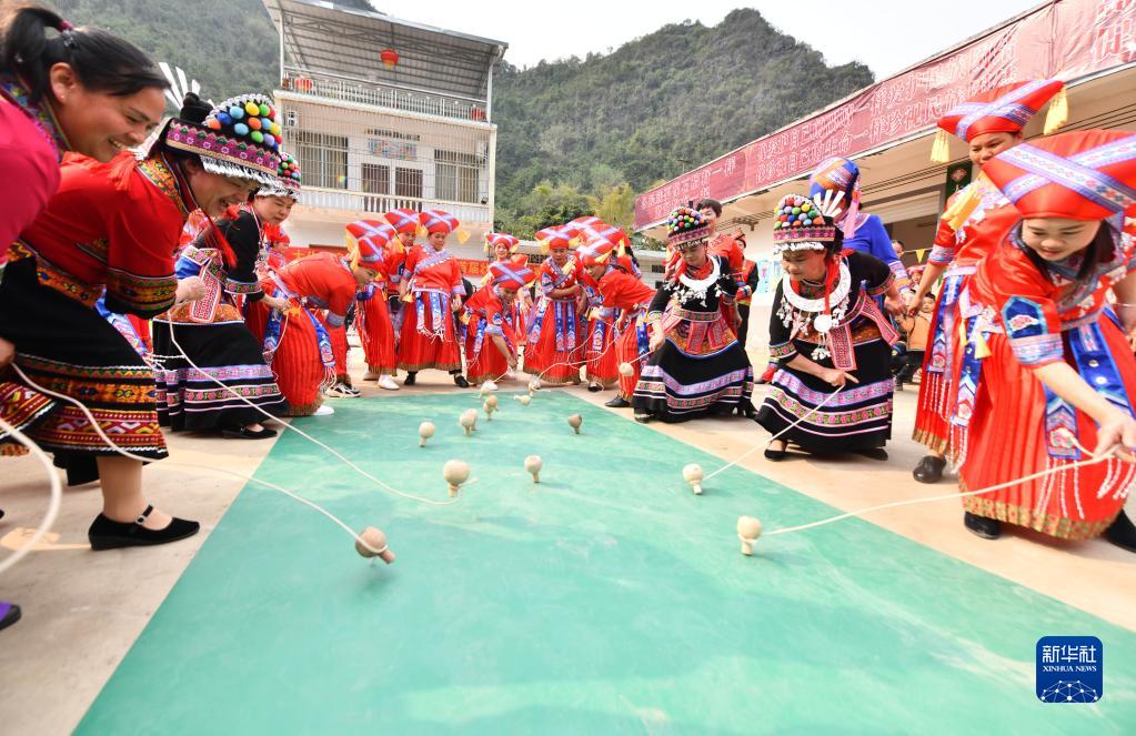 當日,廣西大化瑤族自治縣大化鎮仁良村舉辦“三八”國際婦女節陀螺比賽,壯、瑤、漢等各族婦女歡聚一堂,通過(guò)打陀螺、跳竹竿舞、品長(cháng)桌宴等豐富多彩的民俗體育和文化活動(dòng),迎接節日。