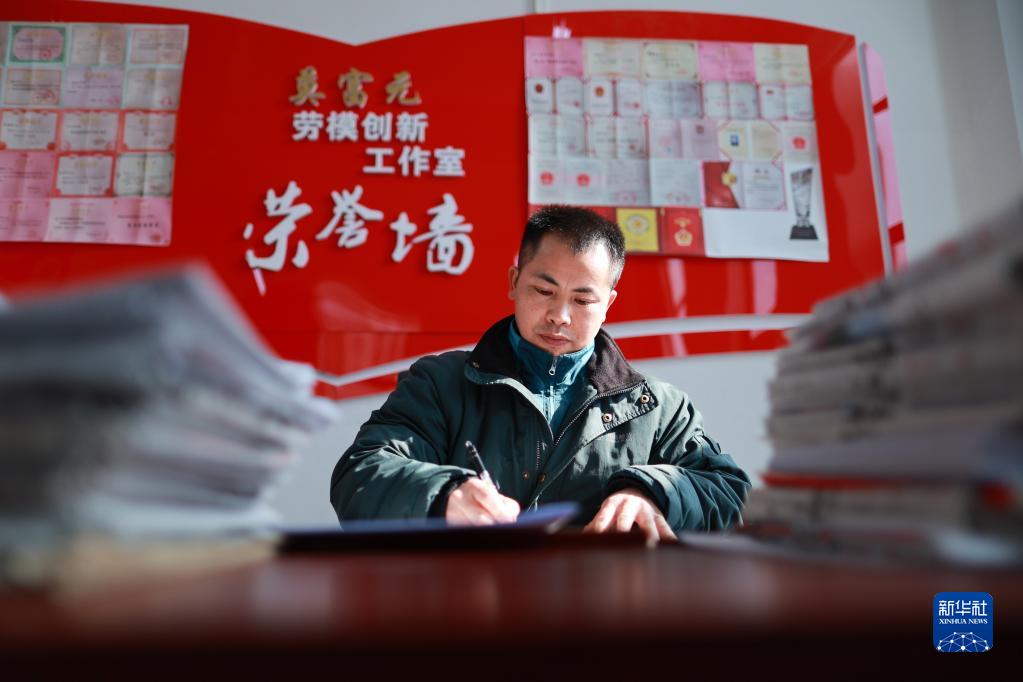 莫富元在中國郵政貴州省龍里分公司辦公室內進(jìn)行投遞記錄(2月14日攝)。