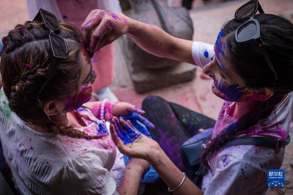 灑紅節也叫胡里節,人們在節日期間互相涂抹顏料,迎接春天的到來(lái)。