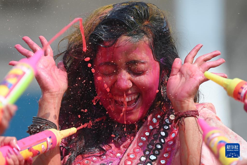 灑紅節也叫胡里節,人們在節日期間互相涂抹顏料,迎接春天的到來(lái)。