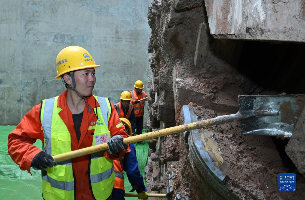 3月7日,在合肥軌道交通4號線(xiàn)南延線(xiàn)萬(wàn)佛山路站至明珠大道站區間中間風(fēng)井,工作人員對破洞而出的盾構機進(jìn)行清理。