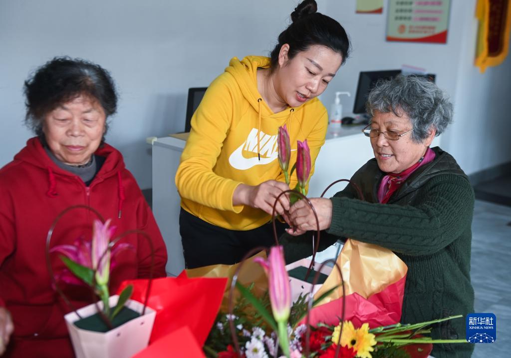 3月7日,在浙江省嘉興市南湖區南湖街道桂苑社區,居民們參加婦女節“插花課堂”活動(dòng)。