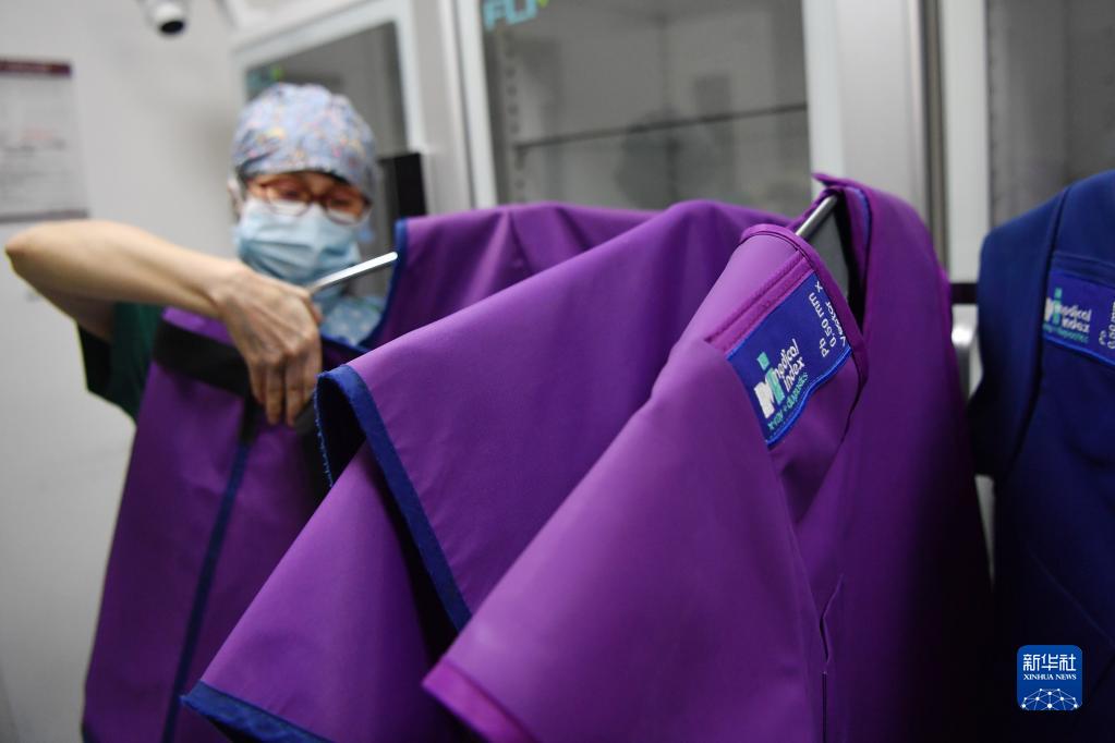 由于心內科所開(kāi)展的介入治療需要在造影機放射出X光射線(xiàn)的手術(shù)室里完成,為了盡量減少輻射所帶來(lái)的傷害,馬娜和同事們進(jìn)入手術(shù)室前都需要穿戴20多斤重的鉛制防護服,來(lái)“阻隔”射線(xiàn);有時(shí)在手術(shù)室里一站就是十幾個(gè)小時(shí),每次做完手術(shù)褪下厚重的鉛衣,整個(gè)后背都會(huì )濕透。