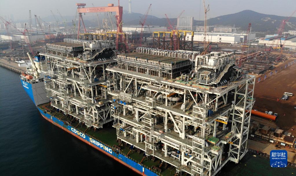 當日,由中國海洋石油工程股份有限公司承建的又一超大型國際能源裝備——加拿大LNG(液化天然氣)項目的最后兩個(gè)核心模塊在青島場(chǎng)地完工裝船,至此,該項目中由我國承建的模塊全部順利交付。