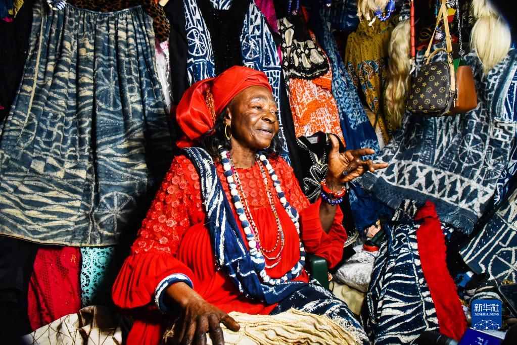 恩多普是主要流行于喀麥隆西部大區的一種布料,可以制成衣物、帽子和項鏈等。制作過(guò)程中,先用墨線(xiàn)在白色棉布上繪制紋樣,再用干燥的棕櫚葉脈做線(xiàn)把紋樣扎起來(lái),經(jīng)靛藍的植物染料浸染后,拆去棕櫚葉脈,便得到藍底白紋的恩多普。如今,眾多喀麥隆婦女投入恩多普制作領(lǐng)域,這不僅改善了她們的生活,也推動(dòng)了文化的傳承。