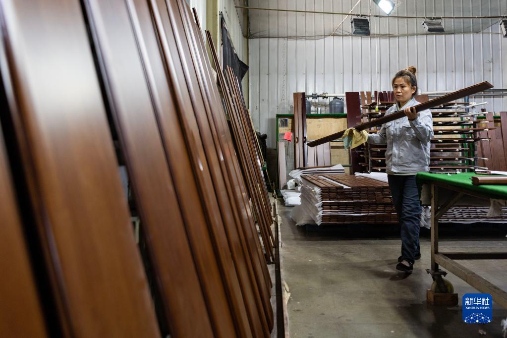 3月7日,在七臺河市雙葉家具實(shí)業(yè)有限公司,工人朱亞維在生產(chǎn)車(chē)間作業(yè)。