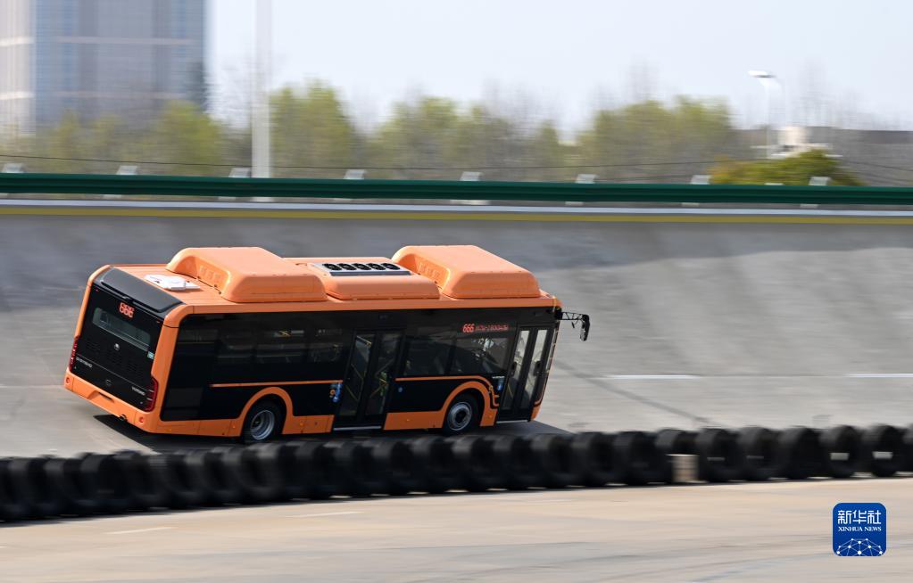 3月8日,一輛客車(chē)在宇通新能源廠(chǎng)區試驗場(chǎng)內測試。