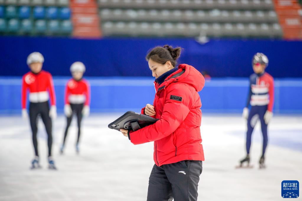 3月9日,中國短道速滑隊主教練張晶在現場(chǎng)指導。