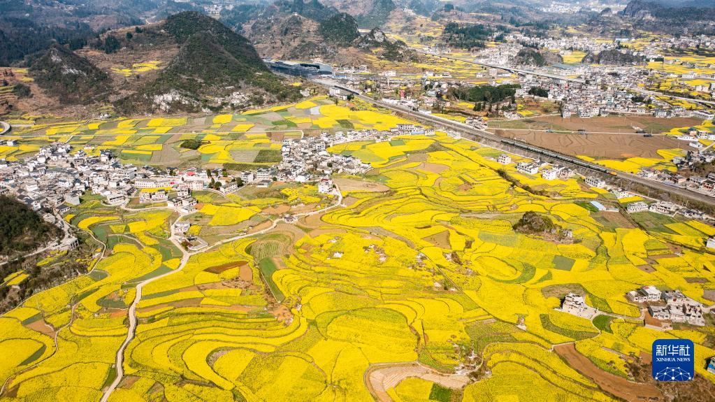 近日,貴州省六盤(pán)水市六枝特區木崗鎮的16000余畝油菜花競相綻放,與田地、民居、道路構成了美麗的春日畫(huà)卷。