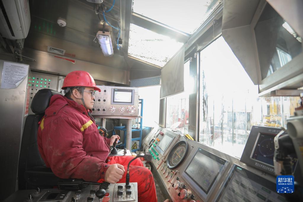 2月9日,在建設中的果勒3C井,工人在操作鉆機。