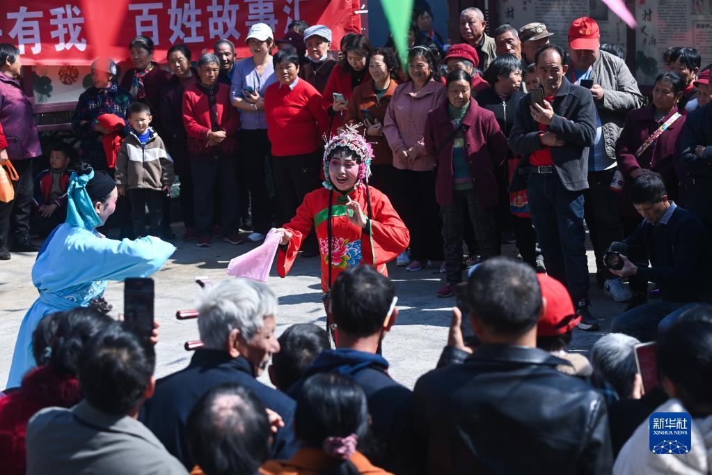 3月10日,在浙江省杭州市淳安縣屏門(mén)鄉屏前村的傳統廟會(huì )上,人們在觀(guān)看屏門(mén)睦劇表演。