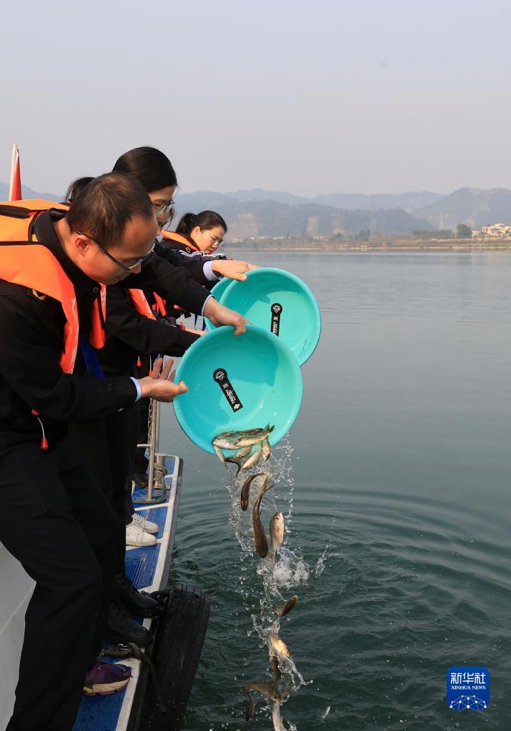 當日,廣西柳州市融安縣舉行2023年春季植樹(shù)暨漁業(yè)資源增殖放流活動(dòng),當地工作人員、市民和學(xué)生在珠江支流融江沿岸種植樹(shù)木,并將5萬(wàn)余尾鯉魚(yú)、鯽魚(yú)、鳙魚(yú)等魚(yú)苗放流江中,增加水域魚(yú)類(lèi)群體數量,改善水域生態(tài)環(huán)境。