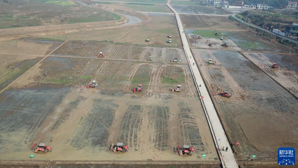 當日,在湖南省湘潭市湘鄉市舉行的湖南省供銷(xiāo)合作社農業(yè)社會(huì )化服務(wù)大聯(lián)盟成立儀式現場(chǎng),種糧能手在200畝高標準農田里操作農機設備進(jìn)行“比武”,通過(guò)拖拉機犁田、旋耕機翻耕、植保無(wú)人機飛防等農機技能比賽提升農業(yè)服務(wù)水平,助力春耕備耕。