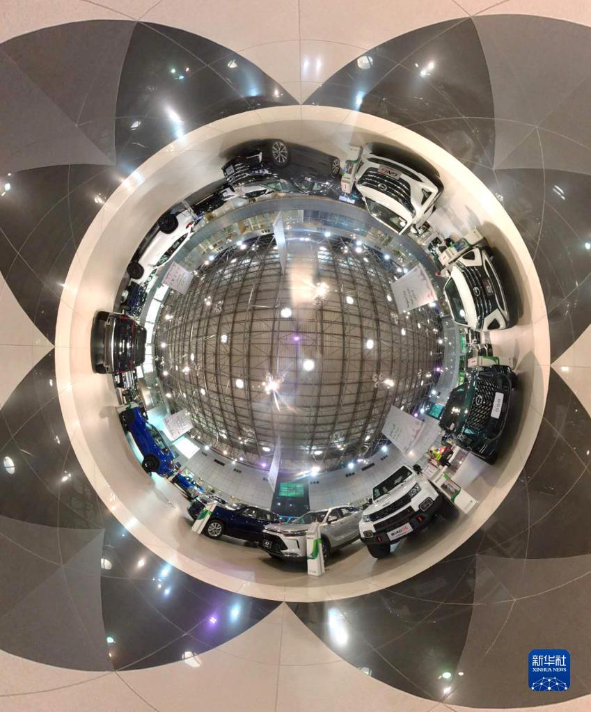 這是3月5日在科威特費爾瓦尼耶省中國汽車(chē)專(zhuān)場(chǎng)嘉年華活動(dòng)上拍攝的中國汽車(chē)(全景相機拍攝)。