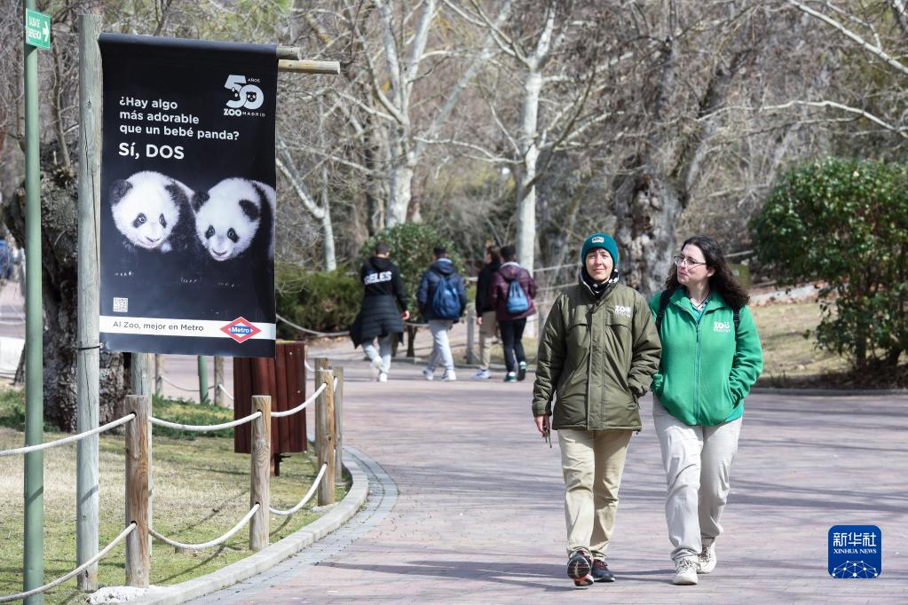 3月7日,人們經(jīng)過(guò)西班牙馬德里動(dòng)物園內的大熊貓雙胞胎海報。海報上寫(xiě)著(zhù)“有什么比一只大熊貓寶寶更可愛(ài)的嗎?有,兩只?!?/p>