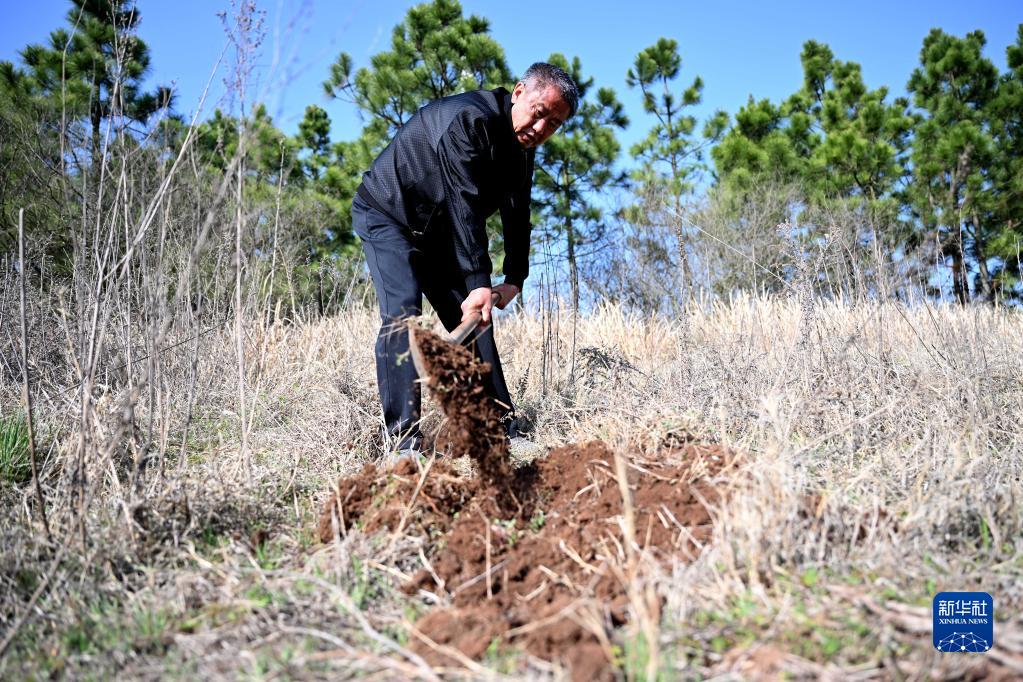 3月10日,張偉在陸沖山栽樹(shù)。