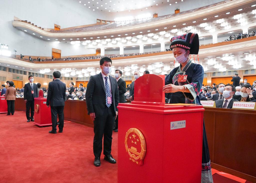 3月11日,十四屆全國人大一次會(huì )議在北京人民大會(huì )堂舉行第四次全體會(huì )議。這是代表在投票。
