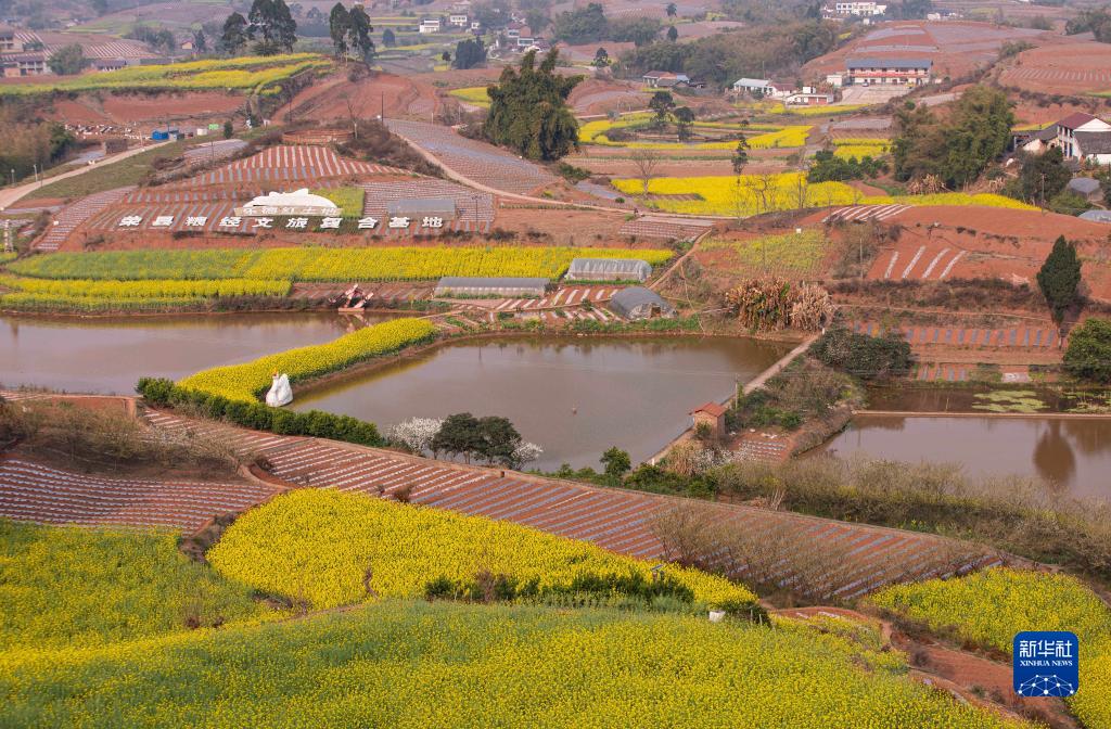 這是3月11日拍攝的四川省榮縣樂(lè )德鎮天宮廟村的田園景色(無(wú)人機照片)。