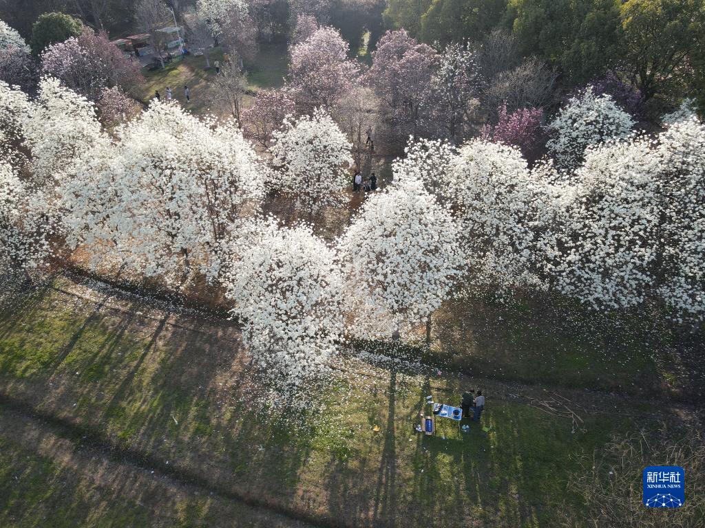 近日,隨著(zhù)氣溫回升,位于江西省南昌市南昌縣鳳凰溝景區的大片玉蘭花、郁金香、櫻花競相綻放,吸引了眾多游客前往踏春游玩。
