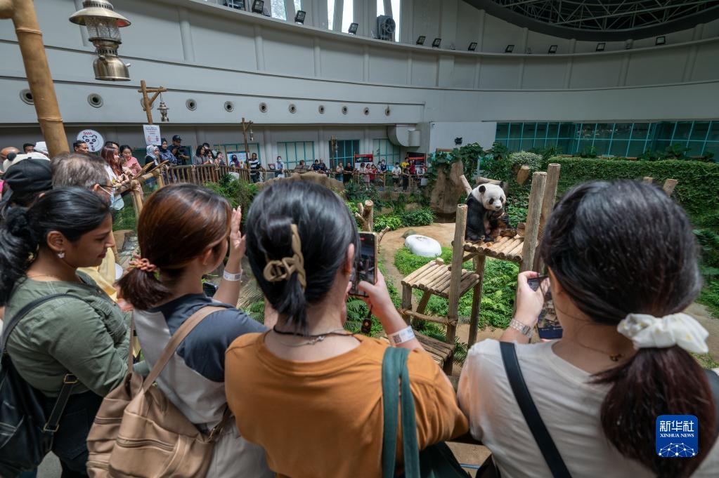 3月11日,游客在馬來(lái)西亞吉隆坡觀(guān)看大熊貓。