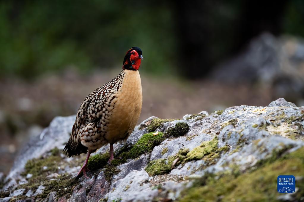 3月11日,在福建省建甌市小橋鎮梨山,一只黃腹角雉在巖石上停歇。