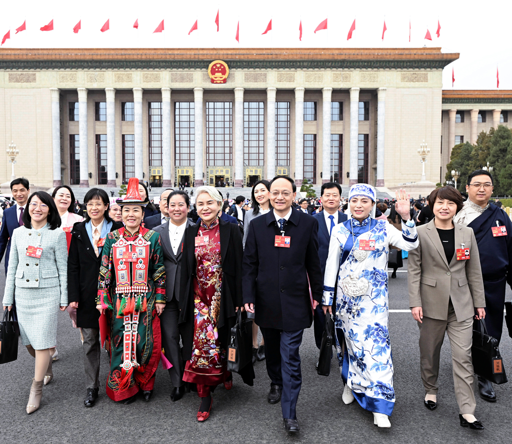 3月13日,第十四屆全國人民代表大會(huì )第一次會(huì )議在北京人民大會(huì )堂舉行閉幕會(huì )。這是閉幕會(huì )后,代表走出人民大會(huì )堂。