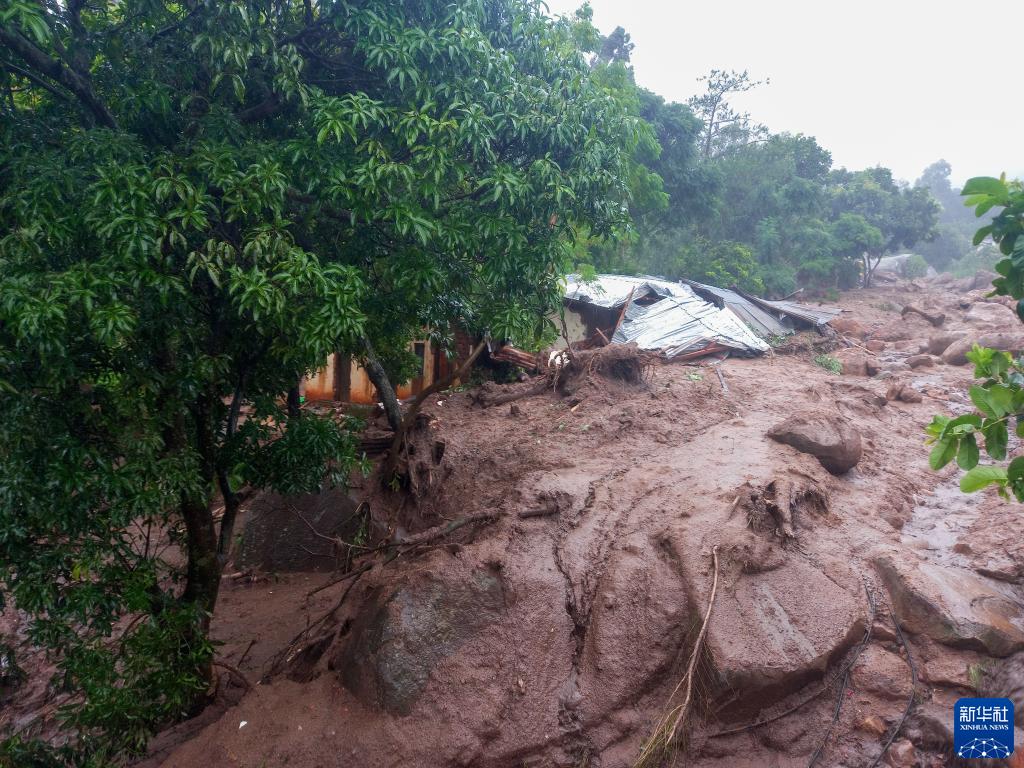 這是3月13日在馬拉維南部布蘭太爾地區拍攝的被泥石流沖毀的房屋。