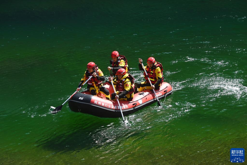 3月14日,在杭州市臨安區的昌化溪,狼行公益應急救援隊的志愿者隊員們在進(jìn)行水上救援培訓。