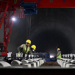 3月14日,在中鐵十一局池黃鐵路建設現場(chǎng),工人進(jìn)行無(wú)砟軌道施工作業(yè)。