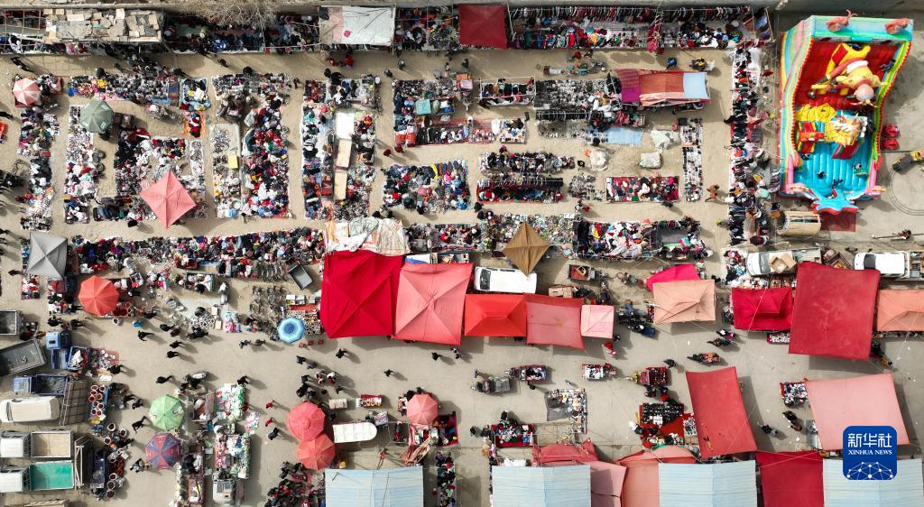 新疆莎車(chē)縣的一處綜合巴扎(無(wú)人機照片,3月12日攝)。