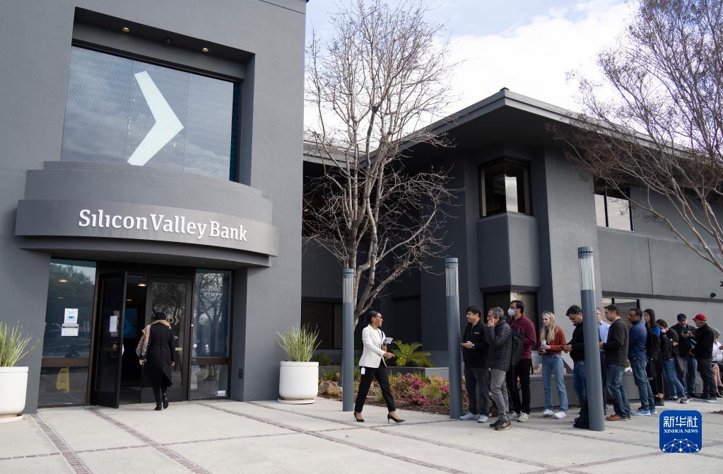 3月13日,客戶(hù)在美國加利福尼亞州圣克拉拉市硅谷銀行總部外排隊等候辦理業(yè)務(wù)。