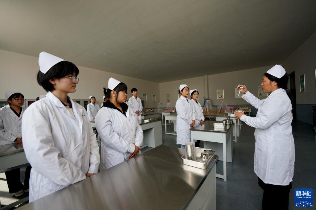 3月14日,河北省巨鹿縣職業(yè)技術(shù)教育中心護理專(zhuān)業(yè)的學(xué)生在學(xué)習護理知識。
